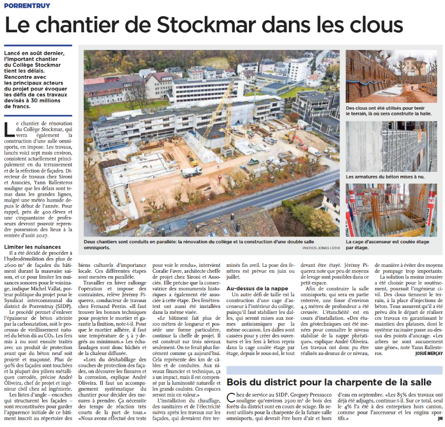 Les travaux du Collège Stockmar continuent de progresser. Lancé en août dernier, le chantier comprend la rénovation du collège ainsi que la construction d’une nouvelle salle double omnisports.